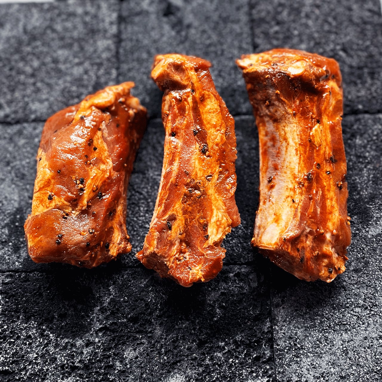 スペアリブに10種類の自家配合オリジナルスパイスとオーガニックソルトで漬け込みました。
