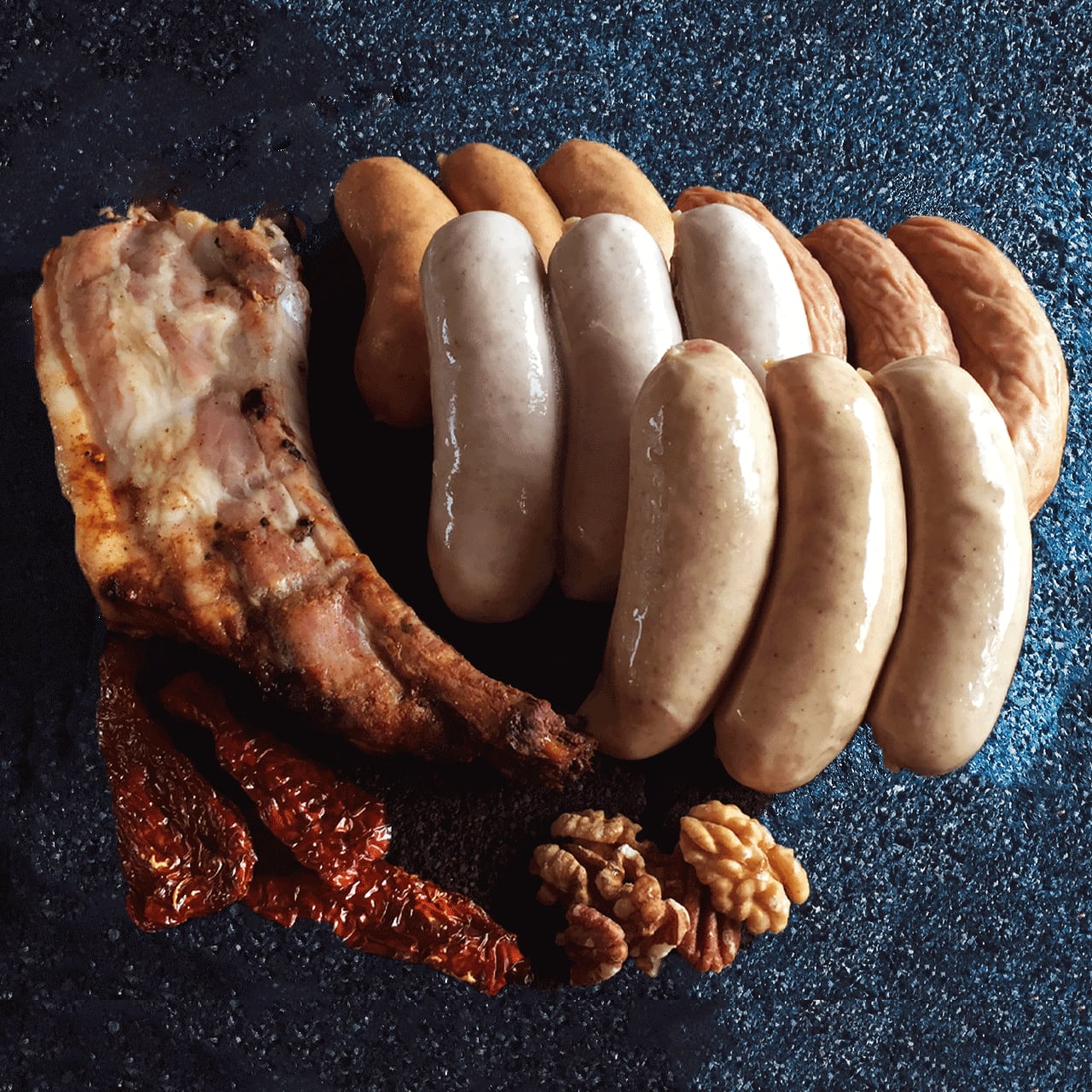 薫り高いPeach Wood (桃の樹)スモーク、粗挽きペッパー、レモンの薫り、パプリカを使ったチョリソーなどの食材が豚肉を最大限に活かしたピュアなソーセージとなっております。